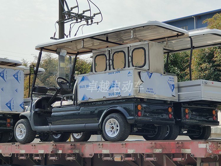 這次出貨我們的客戶是大型酒店,卓越電動車很多酒店的客戶大致上都會訂購這幾類車型,能夠方便酒店中使用,電動高爾夫球車進(jìn)行酒店客戶的接待,都是按照要求訂做的6座車型,有靠背座椅,顏色也是按照客戶要求制作,從圖片上我們就可以看出不止接待車,還有兩種小貨車,帶貨斗和貨箱的都可以選擇,能夠滿足更多日常需求,別看它小,這兩個小貨車承重可不小,對于酒店客戶在使用中已經(jīng)足夠。